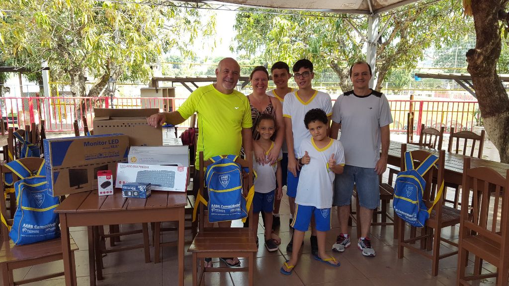 O Presidente da AABB Marcone Valadares, e o Vice-Presidente Ildeu Almeida, entregaram nesta tarde, sexta-feira (05/10), um computador e uma impressora. Esses novos equipamentos irão agregar ainda mais na aprendizagem das crianças. A coordenadora do Programa Ana Paula Campos ficou muito feliz e agradeceu a entrega dos equipamentos que vão fortalecer a estrutura para que os profissionais possam realizar um ótimo trabalho, contribuindo na vida das crianças e adolescentes para que sejam adultos capazes e determinados, proporcionando-lhes um futuro digno.