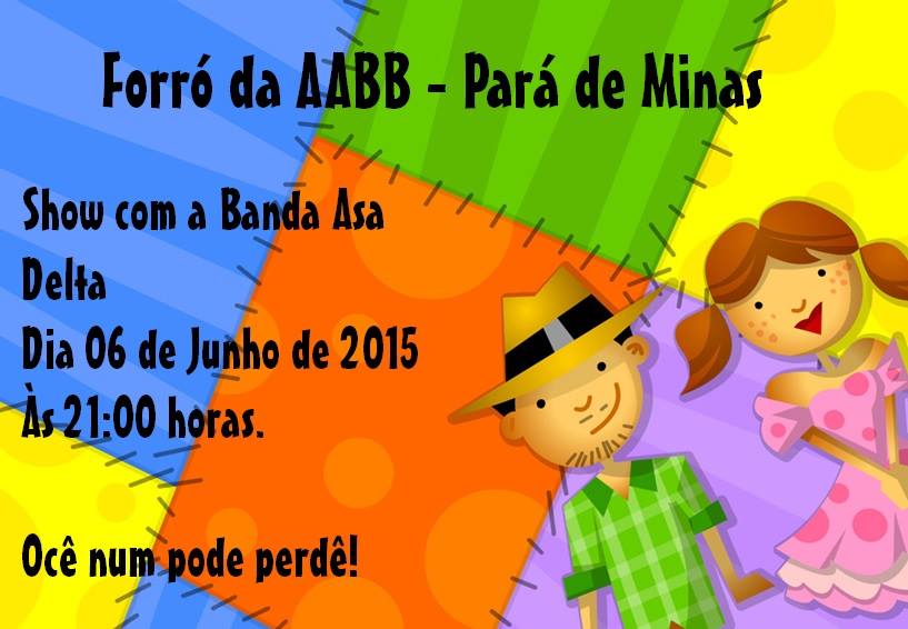 Não percam no próximo dia 06 de junho as 21:00 a AABB Pará de Minas convida a todos seus sócios para a FORRÓ.