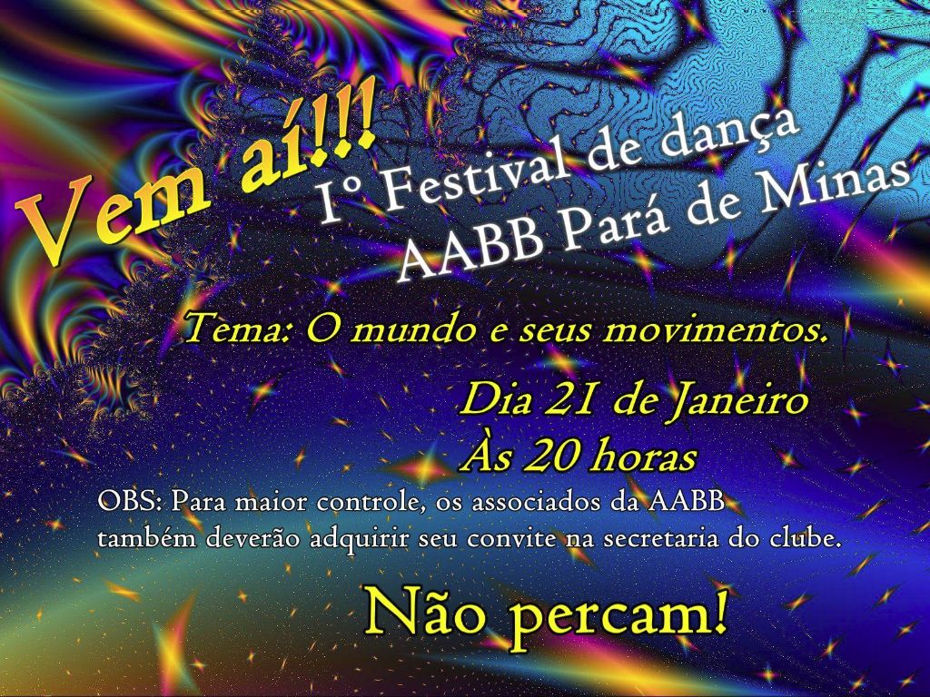 E foi com muita emoção, que no dia 21 de janeiro de 2017, a AABB Pará de Minas, juntamente com uma equipe organizadora, representada pelo professor Wagner, promoveu o Primeiro Festival de Dança de Pará de Minas.